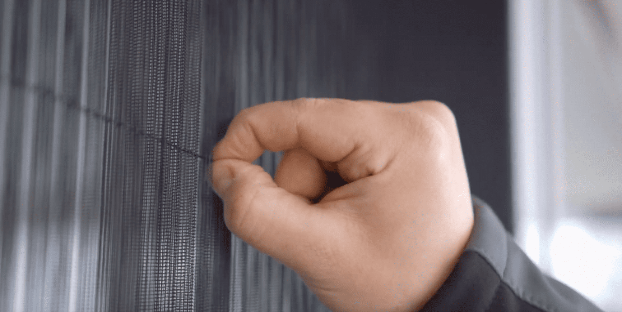 Spezielle Falttechnik des Netzes beim auf- und zuschieben.